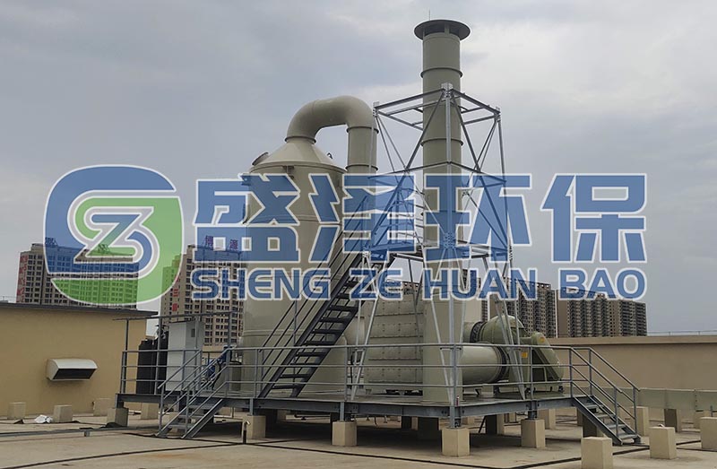 第一步:噴淋處理段:廢氣經(jīng)過管路匯總后,進入噴淋塔,再經(jīng)過通風(fēng)管道的輸送作用,使廢氣輸送到系統(tǒng)的噴淋塔內(nèi),氣體在噴淋塔塔內(nèi)經(jīng)過噴淋水的噴淋洗滌過程,廢氣中含有易溶于水的氣體成份充分與水霧接觸混合,形成較好的氣液兩相交和。經(jīng)過噴淋后的水霧再在洗滌塔內(nèi)的填料層內(nèi)形成一個多孔接觸面較大的處理層,進一步的對有機廢氣進行治理。
