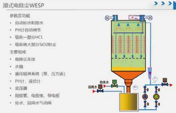 光纖行業(yè)等工藝制程產(chǎn)生的大量極細微(亞微米)粉塵或顆粒物 (如SiO2)、氯化氫(HCL)、氟化氫(HF)、氯氣(CL2)或其它 污染物通過濕式高壓靜電除塵進行處理,達到國家排放 標準后排放。濕式高壓靜電除塵器具有去除效率高、運行費用低、耐腐 蝕、多種污染物同時去除等優(yōu)點,廣泛應用于光纖、半導體、化工、面板等行業(yè)。