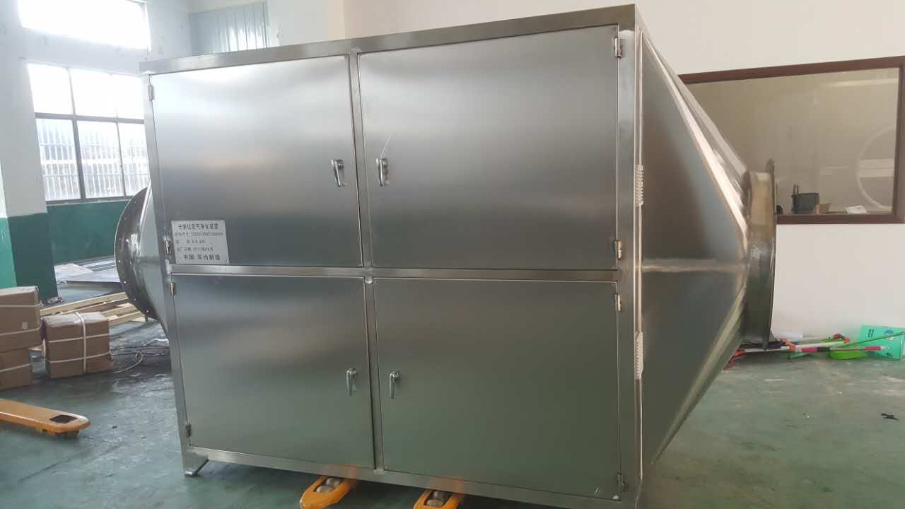 第二、環(huán)保設(shè)備制造商為了圖省事,采用“一刀切”的設(shè)備設(shè)計(jì)方式,往往只用要求風(fēng)量一個(gè)參數(shù),就“心中有數(shù)”了,就可以設(shè)計(jì)設(shè)備尺寸、燈管數(shù)量。這種做法很不專業(yè),也很不負(fù)責(zé),其余的風(fēng)速、反應(yīng)時(shí)間、廢氣中的濕度和顆粒物等因素完全忽略不計(jì),造成凈化效果大大降低。這也會(huì)讓環(huán)保局不看好UV光氧催化設(shè)備